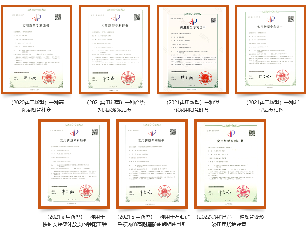 公司積極開展新材料、新技術(shù)、新產(chǎn)品的研發(fā)及應(yīng)用,取得了多項(xiàng)卓有成效的合作成果。近年來研發(fā)團(tuán)隊(duì)已授權(quán)專利32項(xiàng),其中發(fā)明專利5 項(xiàng)。陶瓷結(jié)構(gòu)件的兩個新產(chǎn)品研發(fā)分別獲得“中國創(chuàng)翼(2015)青年創(chuàng)業(yè)創(chuàng)新大賽”銀翼獎和“第四屆中國創(chuàng)新創(chuàng)業(yè)大賽”優(yōu)秀企業(yè)獎,陶瓷缸套產(chǎn)品被授予“安徽工業(yè)精品”,“高壓泵用高強(qiáng)度高耐磨陶瓷基關(guān)鍵結(jié)構(gòu)件研發(fā)及產(chǎn)業(yè)化”項(xiàng)目獲得省級科技進(jìn)步三等獎。主持制定《柱塞泵用氧化物陶瓷柱塞》國家標(biāo)準(zhǔn)。