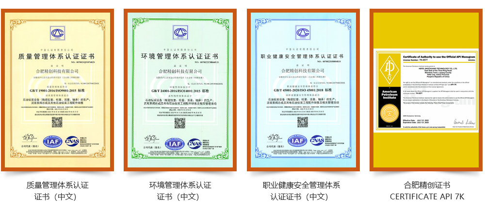 公司擁有一套完善的質(zhì)量管理體系,通過(guò)了 ISO/9001 質(zhì)量管理體系、ISO14001環(huán)境管理體系 、ISO45001 職業(yè)健康安全管理體系認(rèn)證,取得了美國(guó)石油協(xié)會(huì)API產(chǎn)品體系認(rèn)證。