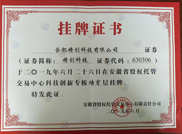 合肥精創(chuàng)科技有限公司于2019年6月26日在安徽省科創(chuàng)板掛牌:證券代碼:630306,熱烈祝賀公司發(fā)展上了一個(gè)新臺(tái)階!